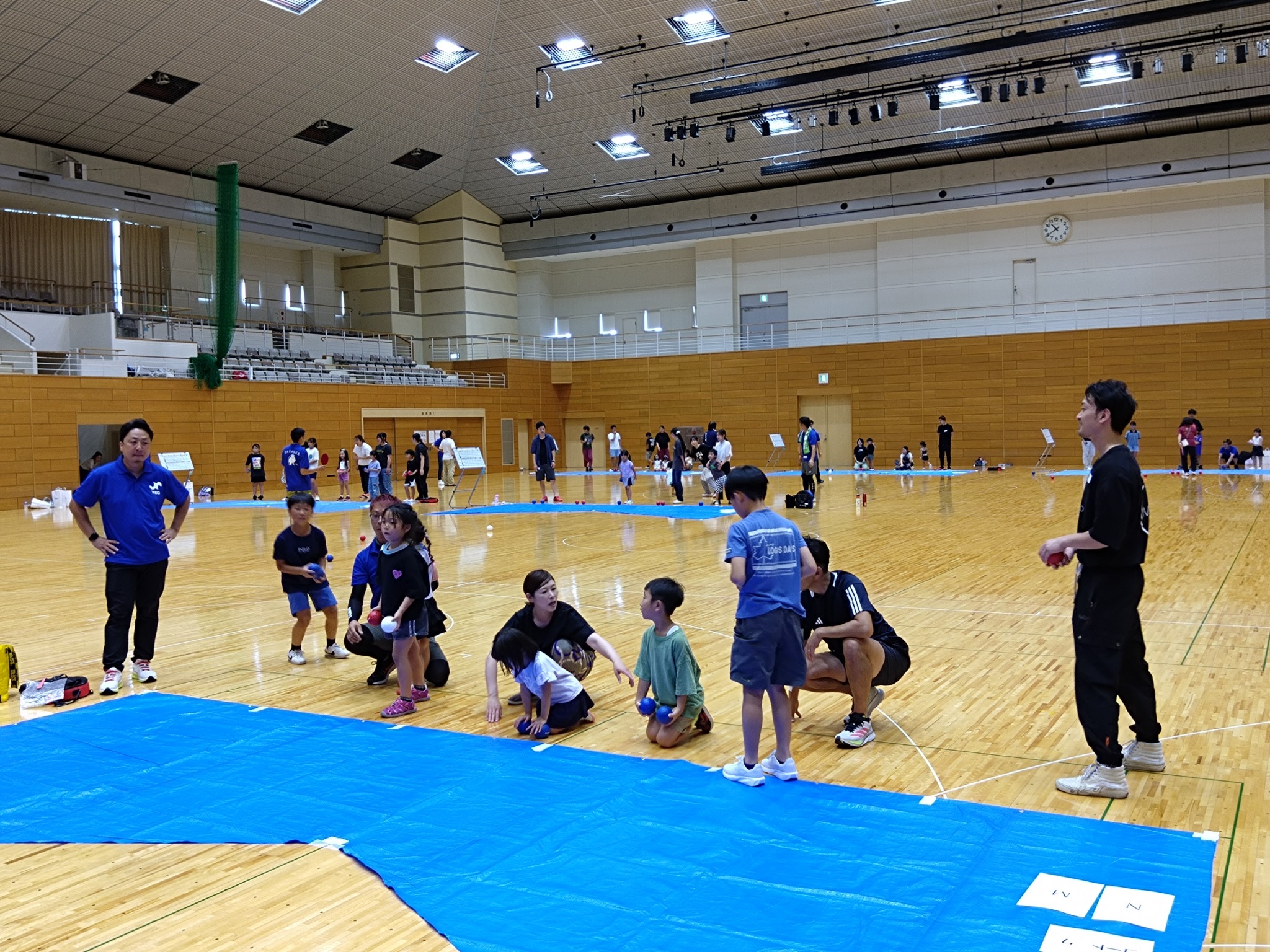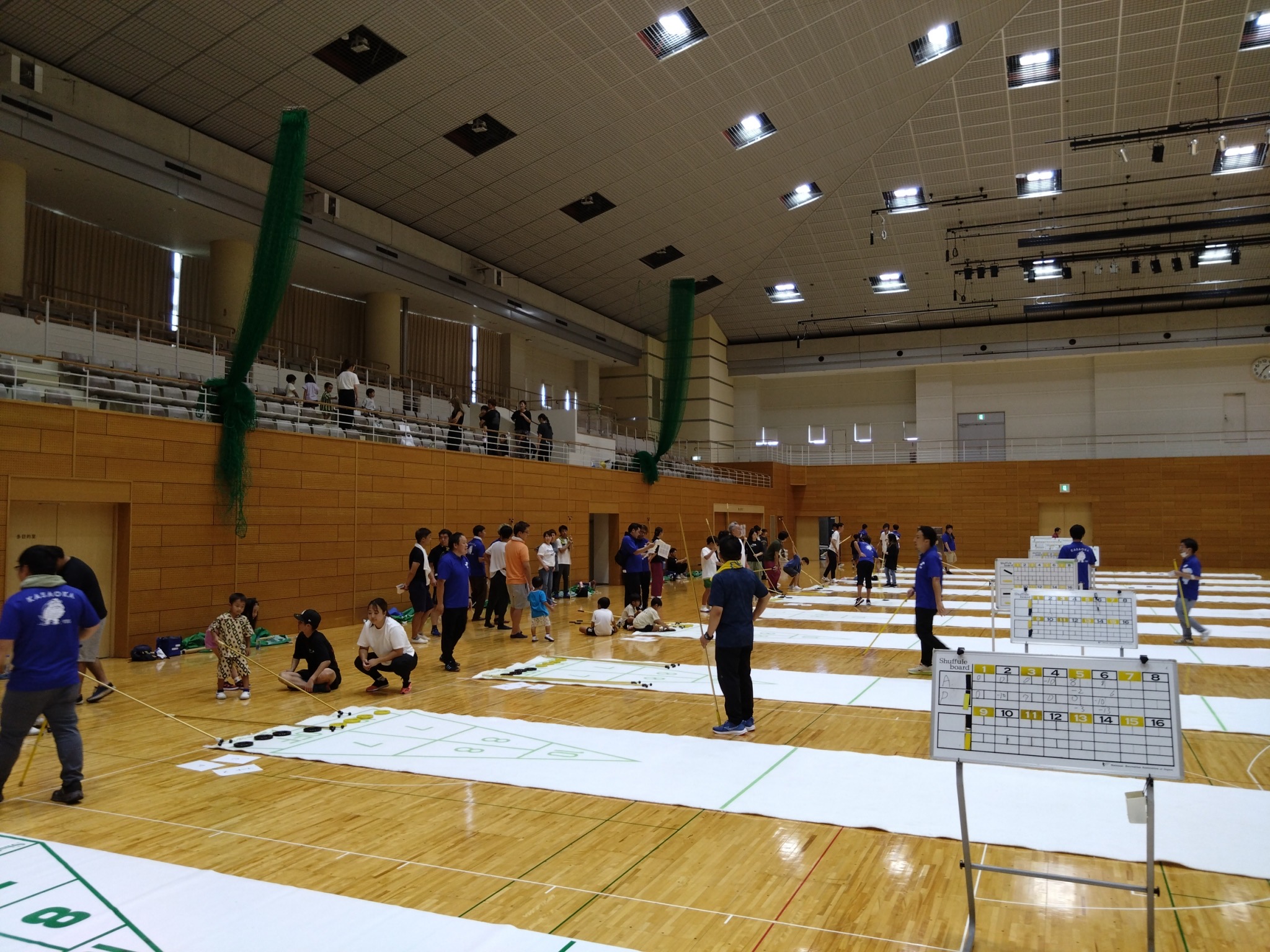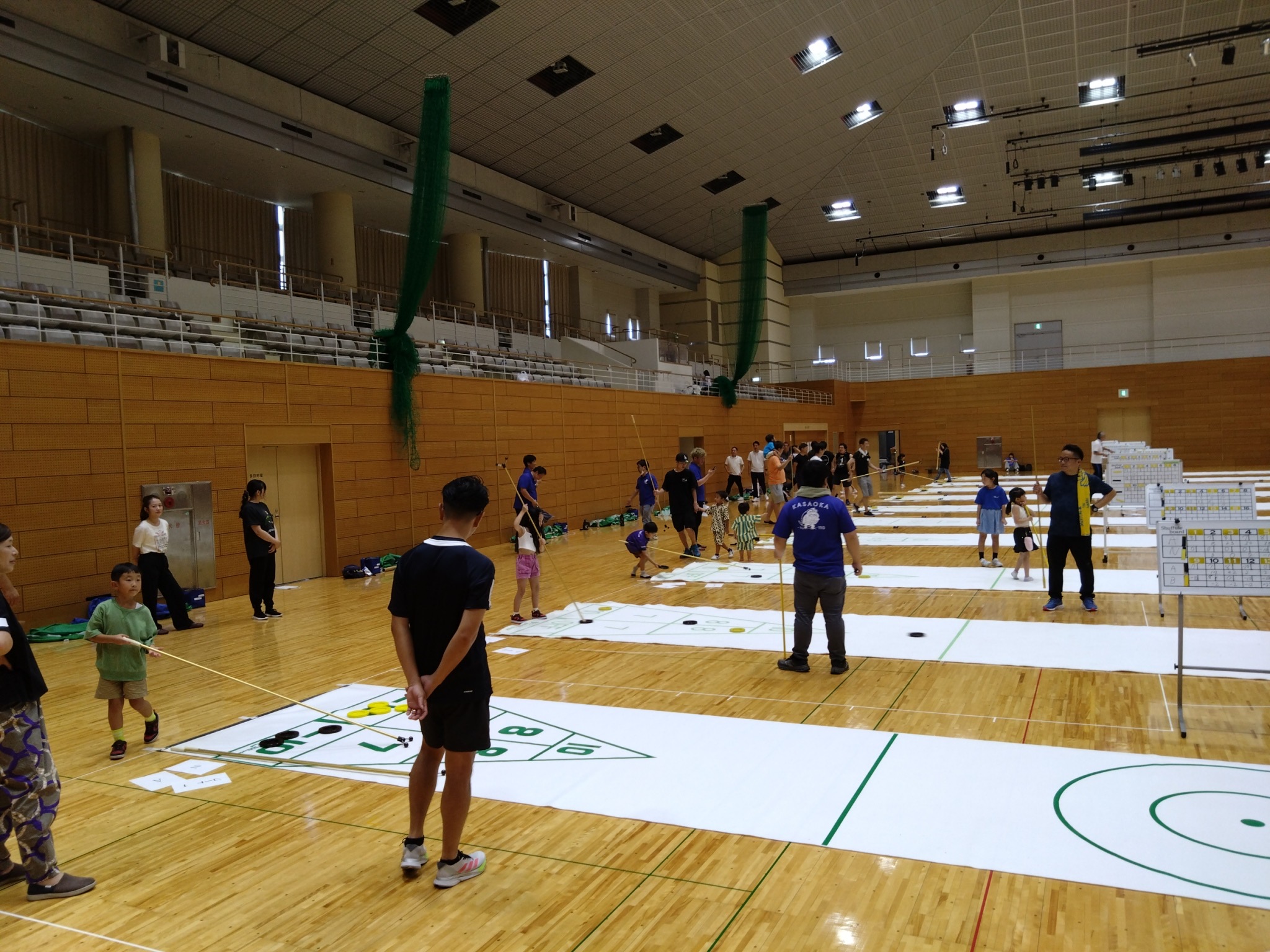 笠岡総合体育館メインアリーナにて家族と楽しむニュースポーツを開催しました。