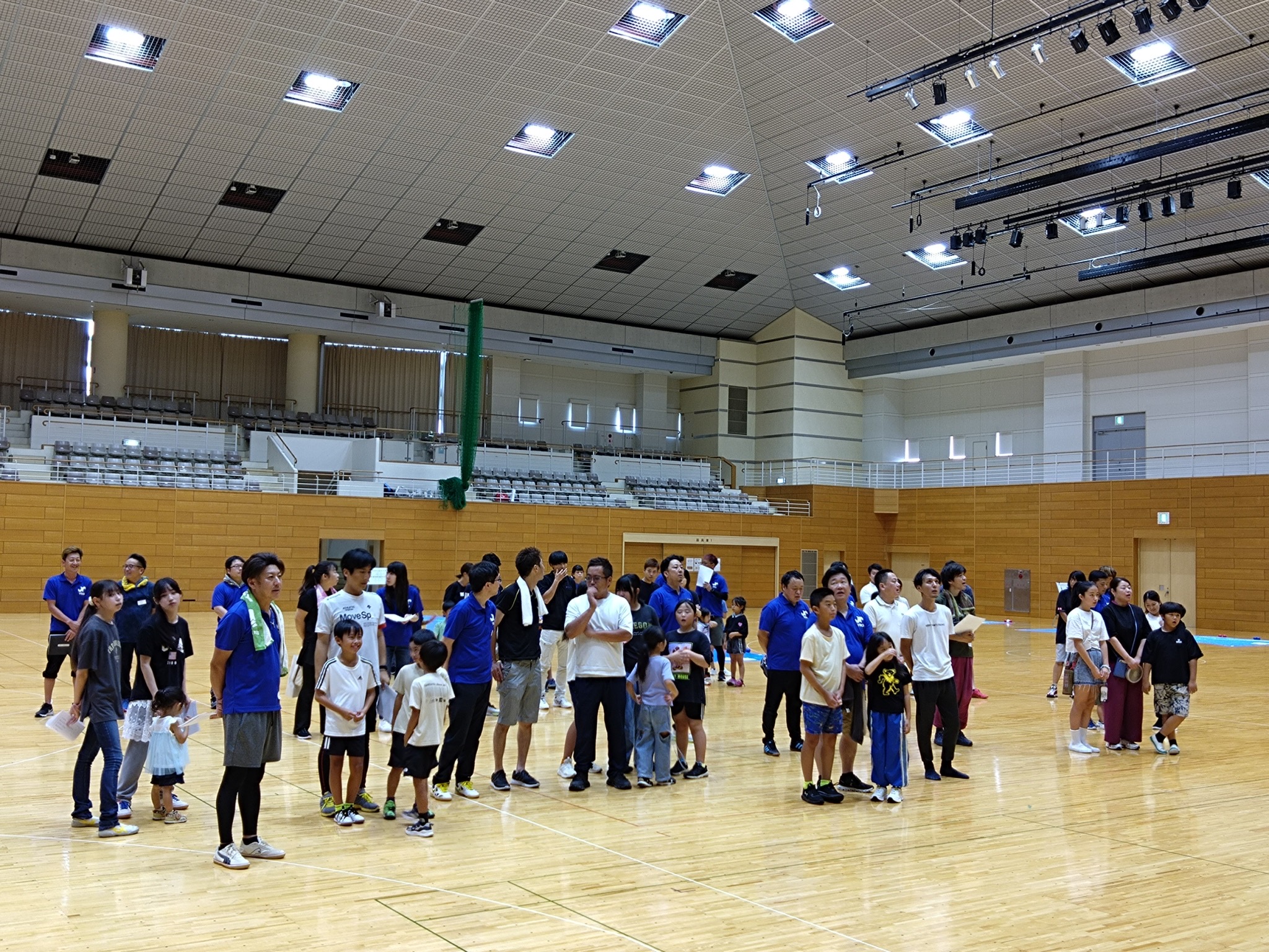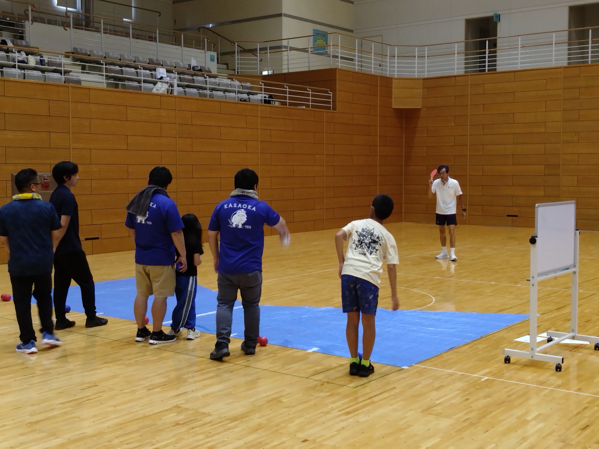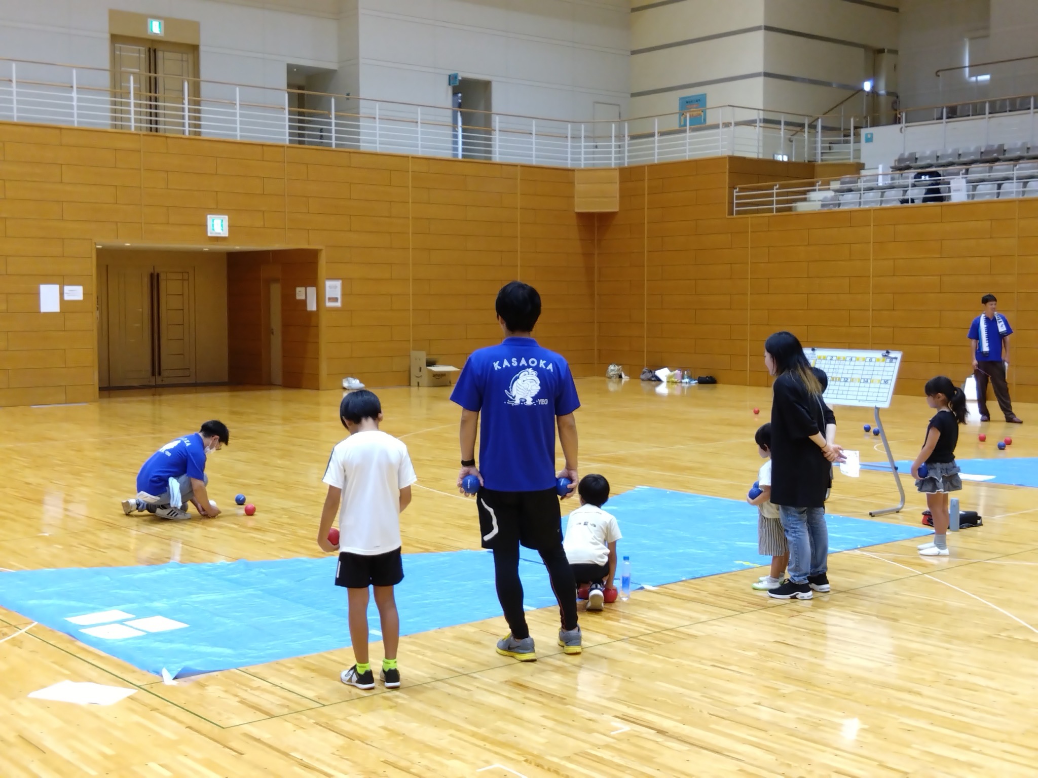 笠岡総合体育館メインアリーナにて家族と楽しむニュースポーツを開催しました。